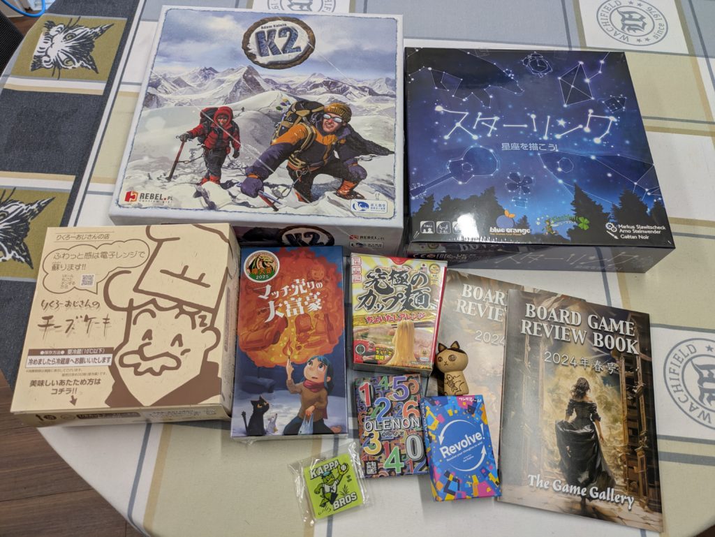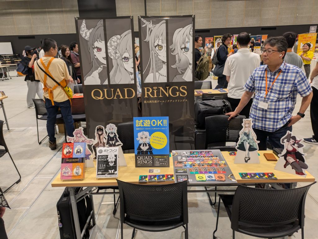 さんの大勢の人の中で亞猫の極度の人見知りが出てしまいブースの写真がいっぱいとれず狐鞭さんの新作「クアッドリングス」のブースや巨大ワンダーボーリングの写真しか取れなかった。ちなみに三枚目の謎の箱はこのために北海道からこられた「かみやパパ」さんの体験型イベント「箱なぞ」で当日は2種類の箱にチャレンジできました。めちゃくちゃクオリティ高くてびっくりしました。大手「アークライト」さんの出店や試遊スペースも充実しており沢山の方の笑い声が聞こえ、他のにもフリマイベントやボドゲ周辺の便利グッズの販売、くじ引きやトークイベントもおこなわれたり大盛り上がりでした