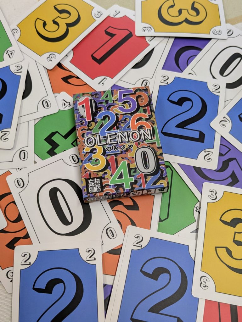 おれの大好きな「バブバブパニック」を出した妄想ゲームズさんの新作。タッグ戦のゴーアウト系、場の数字より大きい同じ枚数だすか、場と同じ数字を出して足すことで「オレノン」(おれのもん)にできる。出せない場合は場のカードを一枚減らしてハードパス、次を出しやすくする。片方でも手札をだしきれば勝利する。動画をみたけど面白そう