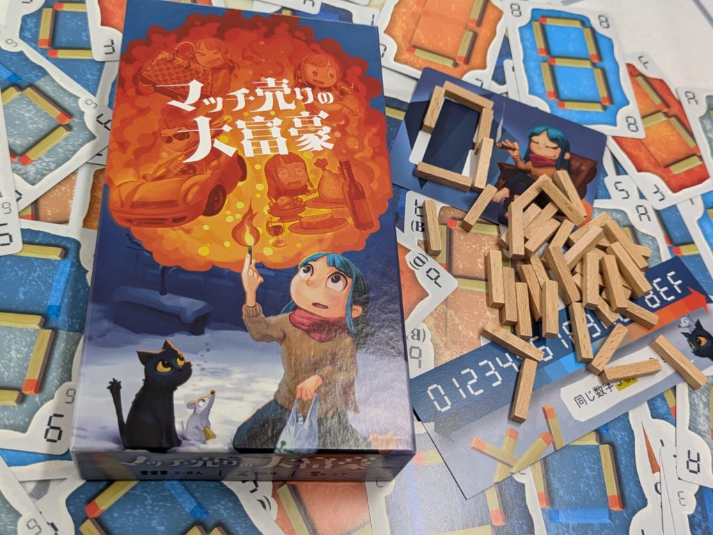 カードにマッチを足すことでカードの強さを変えることが出来る大富豪。パスすることでマッチを手に入れることができるがカードによっては作ることのできない数字もあり当然カードに書いてるマッチを減らすことができない。なかなかの悩ましさ!絵がかわいいですよね