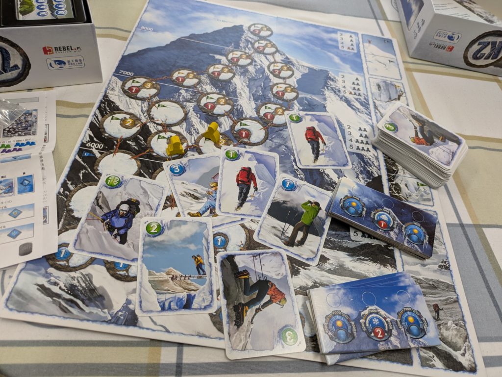 ずっとやってみたかった名作でフリマで破格で売られていたので即購入。世界2位の高さにあるカラコルム山脈を舞台に2人の登山家が18日間をかけ気候や標高による体力の消耗に配慮しながらテントなどをはったりしながら登頂制覇を目指す。2010年に発表された名作。拡張なんかもあるらしい。