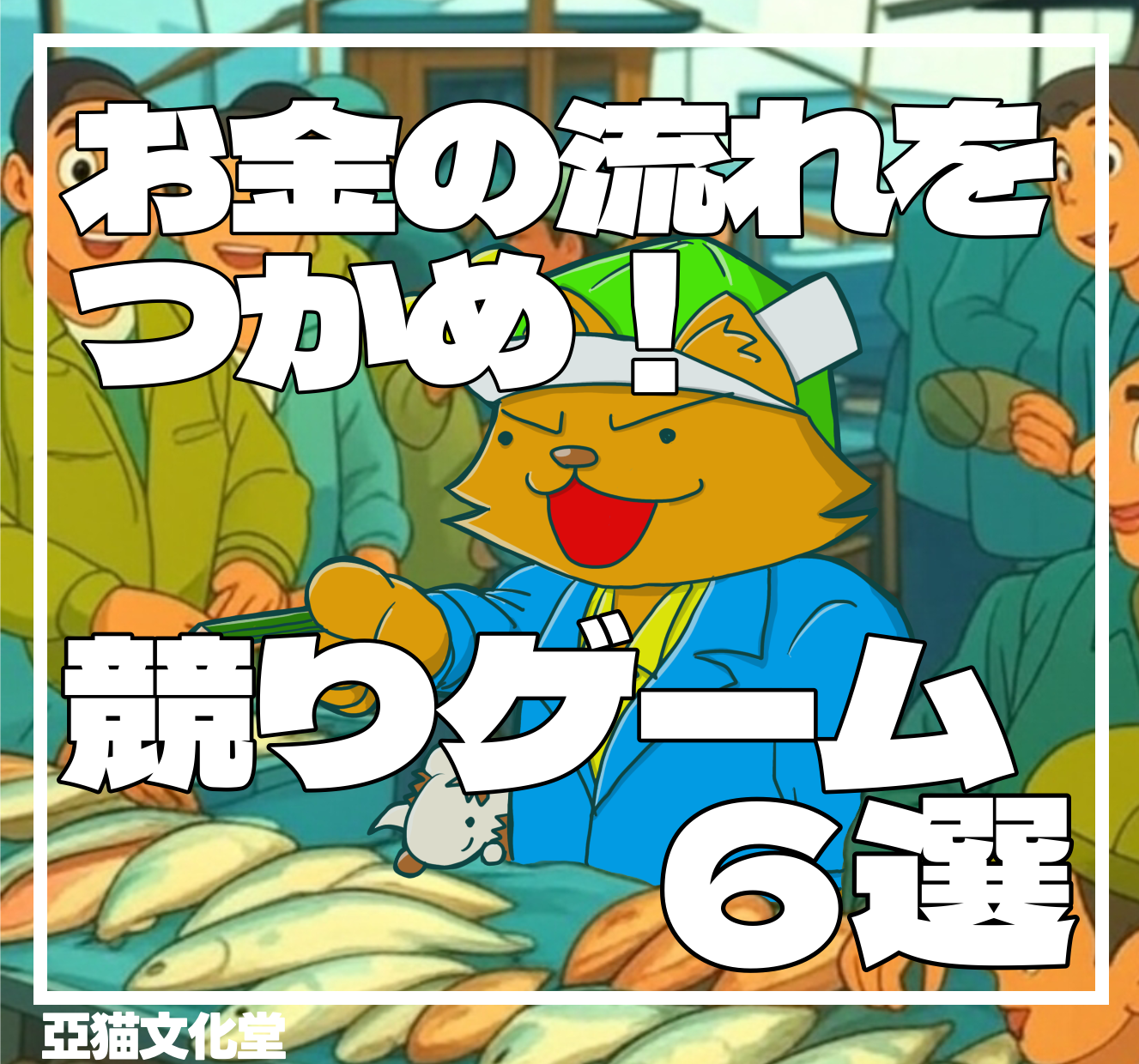 なんだか難しそうと敬遠されがちな競りゲーなんですが、やってみるとそこまで難しくなくお金の上がり下がりを体で感じられ、人間の欲深さ、お金の怖さを知れるので子供の頃からやっておけばよかったなぁと本気で思います。まあそんなこと考えずに気軽に遊べるゲームです。今回紹介した6作品も福岡ボードゲームカフェで遊べます敬遠せずに体験してみてください!