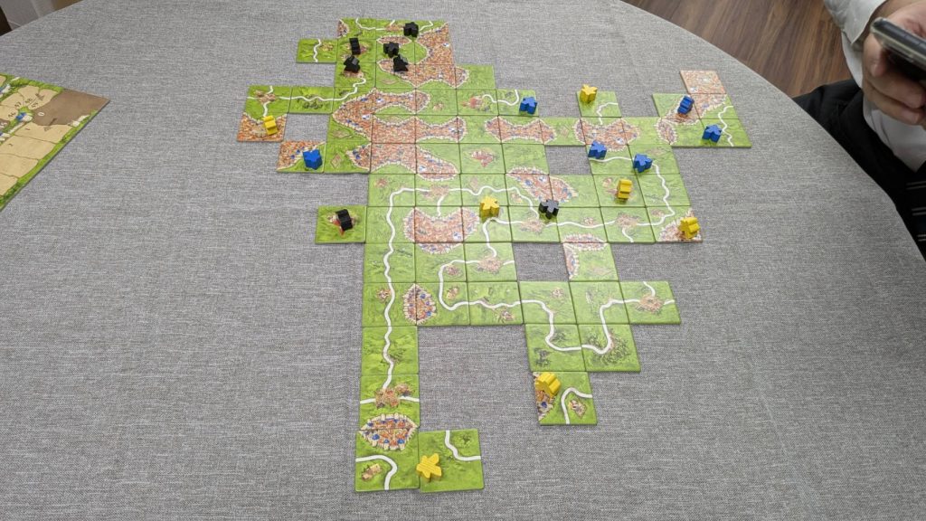 大聖堂の処理が若干難しかったですがタコの足のように長く伸ばした分だけ大聖堂の主に点数が入るので短く済ませようとしたり、修道院も途中で区切れればその先は点数にならないので邪魔したりとちょっとしたアレンジなのに盛り上がりが全然ちがいましたね